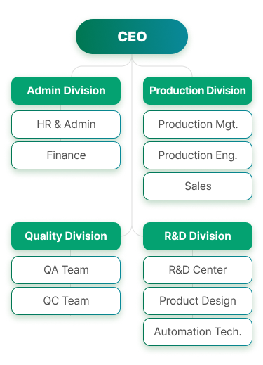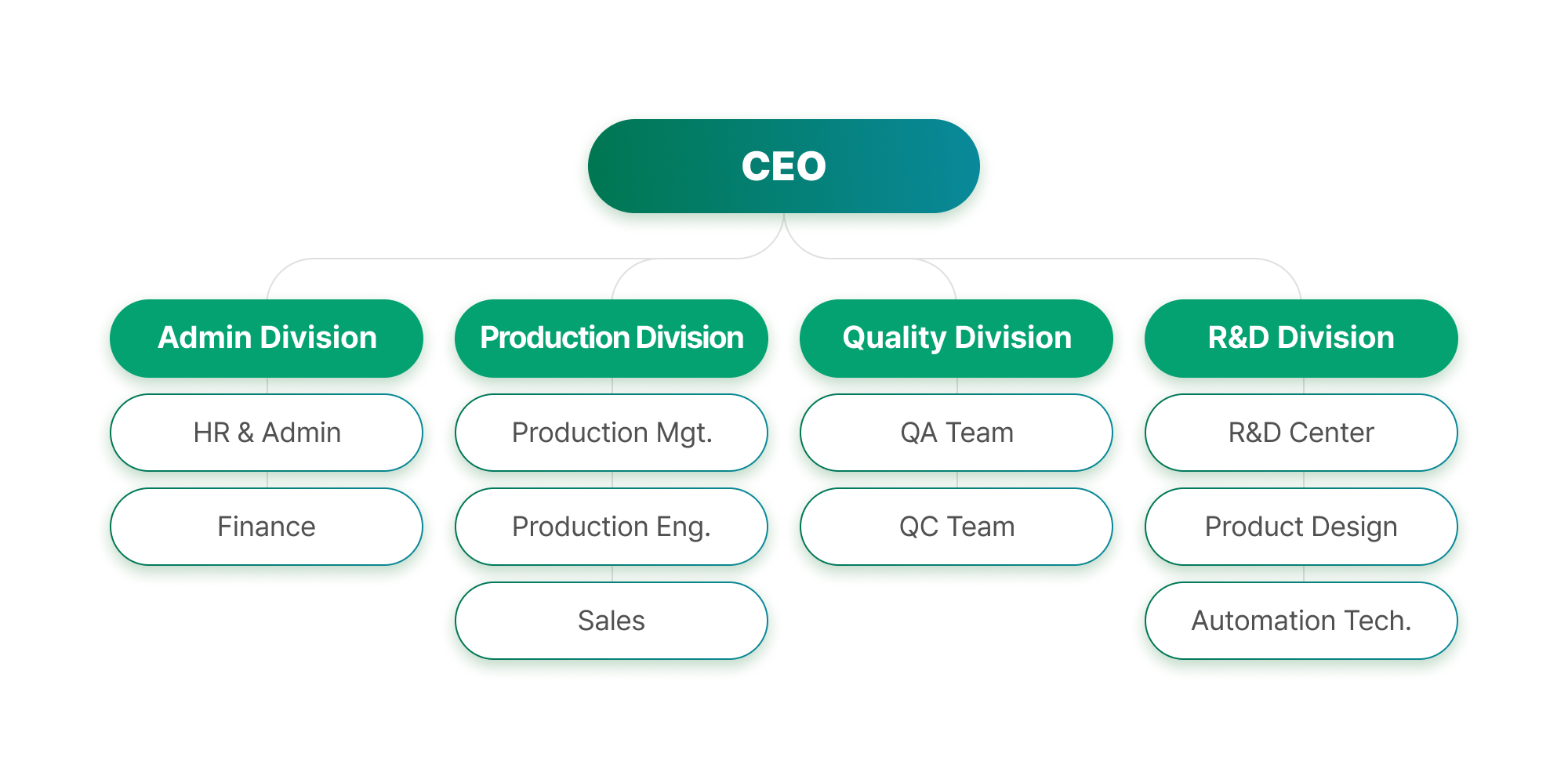 Each division works in harmony to ensure precision manufacturing, rigorous quality control, and continuous innovation in automotive technology.
